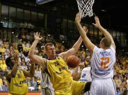 Oldenburg - Mächtig aufgeregt war Mladen Drijencic bei der Pressekonferenz nach dem fast verschenkten Sieg (86:84) der EWE Baskets Oldenburg gegen den MBC Weißenfels am Sonntagnachmittag. Es sei eine Seuche, meinte der Oldenburger Basketball-Trainer mit heiserer Stimme, dass sein Team nicht 40 Minuten lang kontinuierlich seine Leistung halten kann.