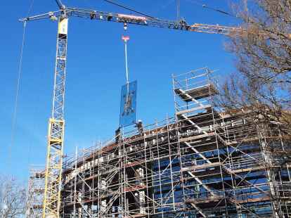 Es war ein Spektakel mit Anlauf: Eigentlich sollten die großen Glassegmente für das neue Festspielhaus-Foyer schon vor einer Woche eingesetzt werden. Doch erst verzögerten Sturmböen, dann der Frost den angekündigten „Kran-Flug“ der Spezialscheiben. Wer aber jetzt noch was vom Einbau sehen will, wird vermutlich zu spät kommen. Die Mitarbeiter der Firma Boetker waren zuletzt derart fix (und hörbar gut gelaunt) bei der Arbeit, dass am Freitag alles komplett sein dürfte.
