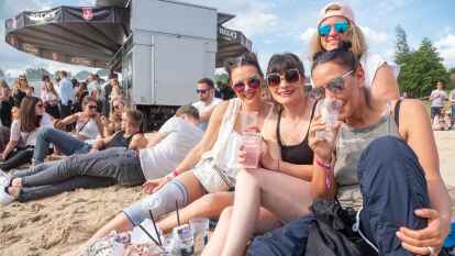 Partyspaß auf der „Oldenbora“: Tausende feiern zur Stunde im Beachclub Nethen.