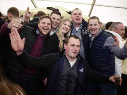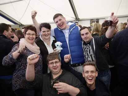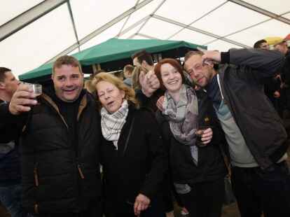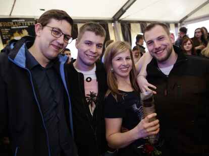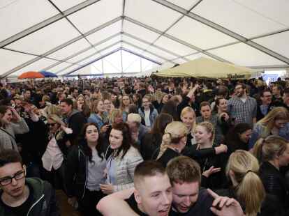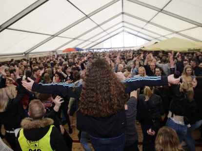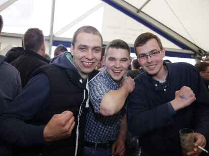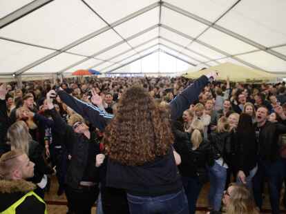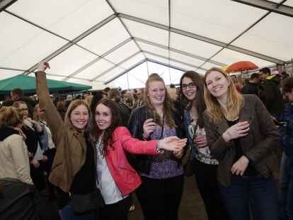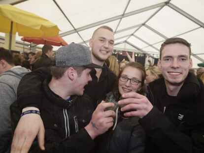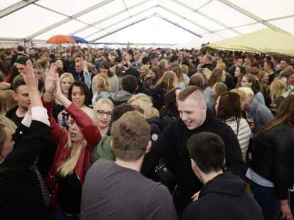 Schutz vor Wind und Regen finden die Partygäste in den Zelten. Und vom Wetter lassen sich die Feierwütigen sowieso nicht abhalten. „Spohle muss schocken, scheiß aufs Wetter“, sagt Malte aus Rheinland-Pfalz. Er und seine Kumpel Hilko und Gerrid sind zum ersten Mal dabei. Die drei werden in Rostrup zu Landwirten ausgebildet. Trotz Party zum Tanz in den Mai am Montag sind sie fit für den Frühtanz im Spohler Krug.
