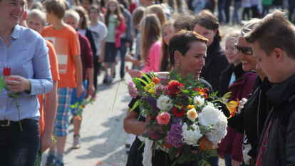 Mit dem Pensionärsmobil zur Schule: Stephan Piper wurde am letzten Tag als Rektor der Waldschule von Hans-Gerd Cordes in einer Rikscha zur Schule gefahren. Alle Schüler standen Spalier und schenkten Blumen zum Abschied.