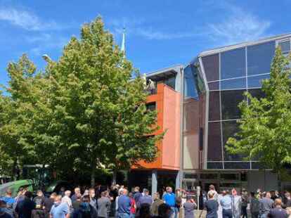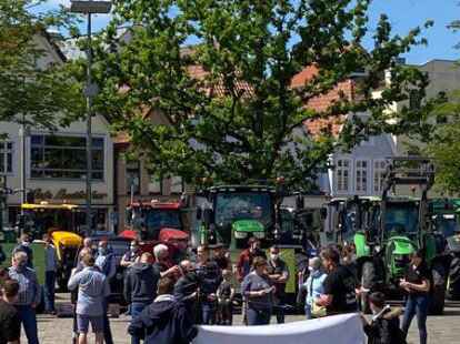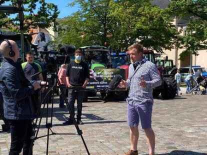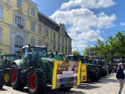 Oldenburg - Vor dem Polizeipräsidium am Theodor-Tantzen-Platz ist es um 11.15 Uhr noch ruhig. Doch während viele Landwirte auf dem Schlossplatz demonstrieren, beziehen Felix Müller, Arno Oeltjen und Michael Hinrichs mit weiteren Landwirten Stellung. Sie stehen mit dem zurzeit nötigen Abstand im Kreis, unterhalten sich, machen ein paar Scherze, halten Ausschau nach den Kollegen, die jeden Moment mit Treckern angefahren kommen.