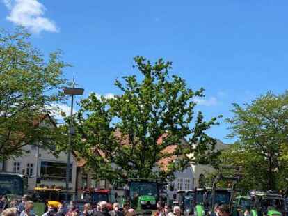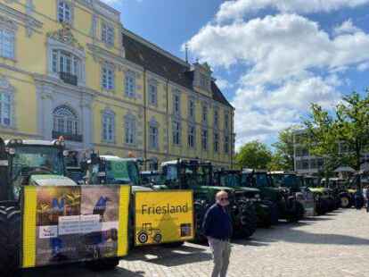 Bei der Treckerdemo sind die Friesen auf dem Schlossplatz Oldenburg nicht zu übersehen.