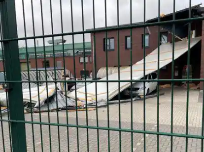 Orkan riss gleich das ganze Dach eines Gebäudes am Tonnenhof in Emden ab. Ein Mitarbeiter konte sich gerade noch retten.