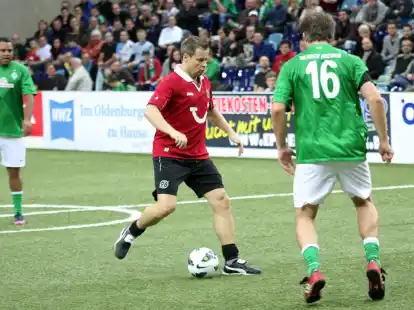 Die Oldenburger Auswahl gewinnt das Turnier der Traditionsmannschaften in derb großen EWE-Arena. Ailton fehlte im ersten Bremer Spiel. Er hatte am Donnerstag noch in Mexiko einen wichtigen Geburtstag gefeiert.