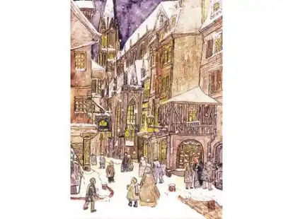 Auf den Aquarellen und Zeichnungen weihnachtet es bereits sehr. Die Bilder des Künstlers, der in Elsfleth wohnt, hängen für eine Woche in „Ilkas Blumenkörbchen“.