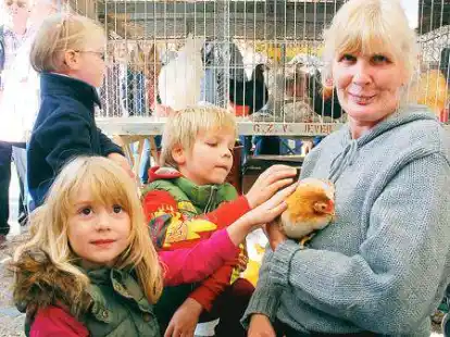 Mini-Hühner genießen Streicheleinheiten von Kindern