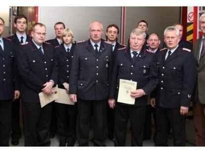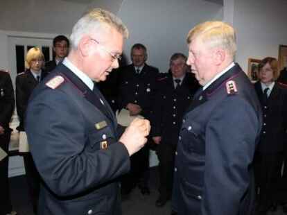 Bis auf wenige Kameraden waren alle Mitglieder der Freiwilligen Feuerwehr Düngstrup zur Jahreshauptversammlung erschienen. „Ihr pflegt eine tolle Kameradschaft“, lobte der stellvertretende Kreisbrandmeister Klaus Stolle. Das gesamte Ortskommando wurde im Amt bestätigt. Neben Werner Hagelmann und Stephan Dasenbrock wurde Torsten Debbeler zum Gruppenführer gewählt. Für 50-jährige treue Mitgliedschaft ehrte Wildeshausens Stadtbrandmeister Jürgen Koch den Kameraden Heinrich Krieger. Kassenwart Helmut Hogeback wurde in die Altersabteilung versetzt. Die Feuerwehr Düngstrup hat mehr als 50 Prozent Atemschutzträger in ihren Reihen.
