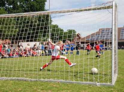 Mit viel Einsatz kämpften die Mädchen der Ammerländer Grundschulen am Donnerstag beim Fußballturnier in Metjendorf darum, den Wanderpokal einzuheimsen. Erfolgreich war letztlich das Team der Grundschule Petersfehn, das im Finale die Brakenhoff-Schule aus Westerstede mit 1:0 besiegte. 20 Mannschaften hatten für das Turnier gemeldet, das zum letzten Mal von Uwe Niemeier aus Wiefelstede organisiert worden war. Seine Nachfolger Cord Labeß und Katja Thiele dankten Niemeier für sein langjähriges Engagement. 31 Jahre lang hatte der heute 71-Jährige die Grundschul-Turniere organisiert.
