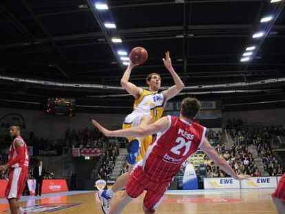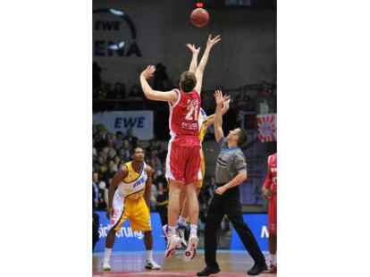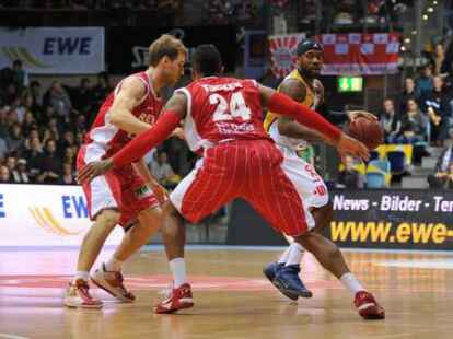 Die Basketballer der EWE Baskets Oldennburg sind auf dem Weg in die Playoffs erneut gebremst worden. Am Mittwochabend unterlag der Bundesligist vor 3084 Zuschauern nicht ausverkauften EWE-Arena dem Meister Baskets Bamberg 89:96 (36:40). Dabei boten die Oldenburger eine gute Leistung und lagen nach dem ersten Viertel sogar 28:20 vorne. Dann aber kamen die Gäste auf, die zur Pause 40:36 führten. Zwar steckten die Oldenburger nicht auf. Sie konnten aber in den abschließenden Vierteln die Niederlage trotz großen Kampfgeistes nicht mehr abwenden. Bester Werfer der Oldenburger, die auf den gesperrten Ronnie Burrell verzichten mussten, war Bobby Brown (21 Punkte). Bei Bamberg holten Brian Roberts und Anthony Tucker je 16 Zähler. Im nächsten Spiel empfangen die Oldenburger an diesem Sonnabend (20 Uhr) Rekordmeister Alba Berlin.