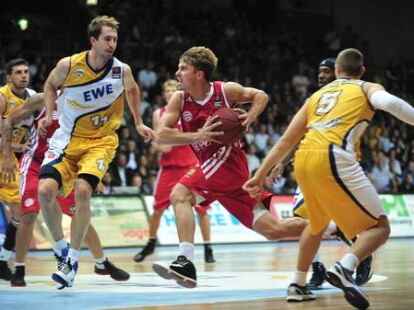 Oldenburg - Die EWE Baskets Oldenburg haben ihre Serie von Niederlagen in der Basketball-Bundesliga gestoppt. Nach zuletzt drei Pleiten in Serie gewann die Mannschaft am Sonnabend gegen den hochambitionierten Aufsteiger Bayern München mit 88:81 40:39. Vor 3148 begeisterten Zuschauern in der ausverkauften EWE-Arena war Bobby Brown mit 28 Punkten bester Werfer der Oldenburger. Nachdem die Münchner besonders im dritten Viertel stark aufgespielt hatten und in Führung gegangen waren, setzten sich die Oldenburger in der Schlussphase entscheidend ab. Bester Werfer der Gäste war Jan-Hendrik Jagla mit 16 Punkten.