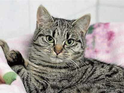 „Trinie“ hat sich in ihrer WG ein weiches Plätzchen gesichert. Auffälligere Katzen werden schneller adoptiert.