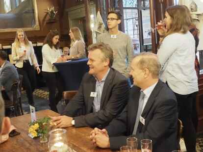 Was läuft konkret? Bei Hüppe gibt es ein Bündel von Maßnahmen. Dazu gehören Sprachkurse mit einem extra engagierten Coach, der in die Firma kommt. Auch den Rest des jeweiligen Tages wird dann oft weiter auf Englisch zu kommuniziert. Aber etwa auch eine zwanglose „English Corner“ wird angeboten – in einer stimmungsvoll gestalteten Ecke in der Betriebskantine, erläuterte Evers.