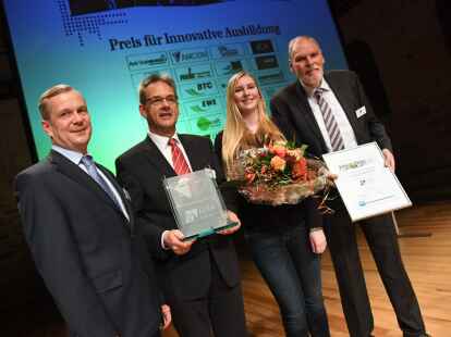 Den dritten Preis erhielt die LUFA Nord-West aus Oldenburg. Sie ermögliche mit der Öffnung ihrer Labore und Module anderen Unternehmen erst eine sehr gute, umfassende Ausbildung von Chemielaboranten, sagte Jury-Mitglied Dr. Thorsten Müller, Vorsitzender der Geschäftsführung der Arbeitsagentur Oldenburg/Wilhelmshaven.